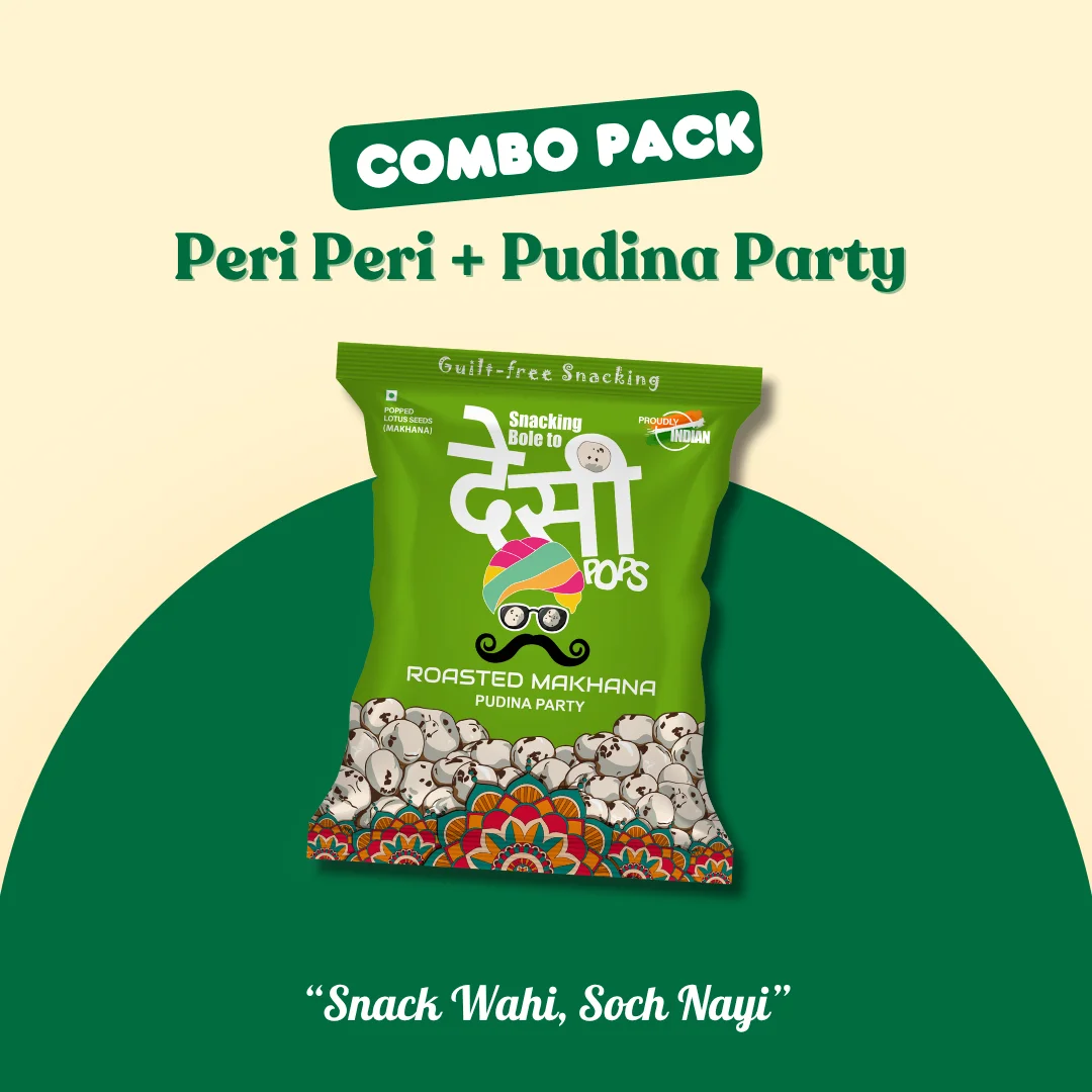 This minty spicy makhana combo is a unique blend of freshness and fire. The roasted Pudina Party and Peri Peri makhanas offer contrasting but complementary flavor notes, perfect for health-conscious snackers.