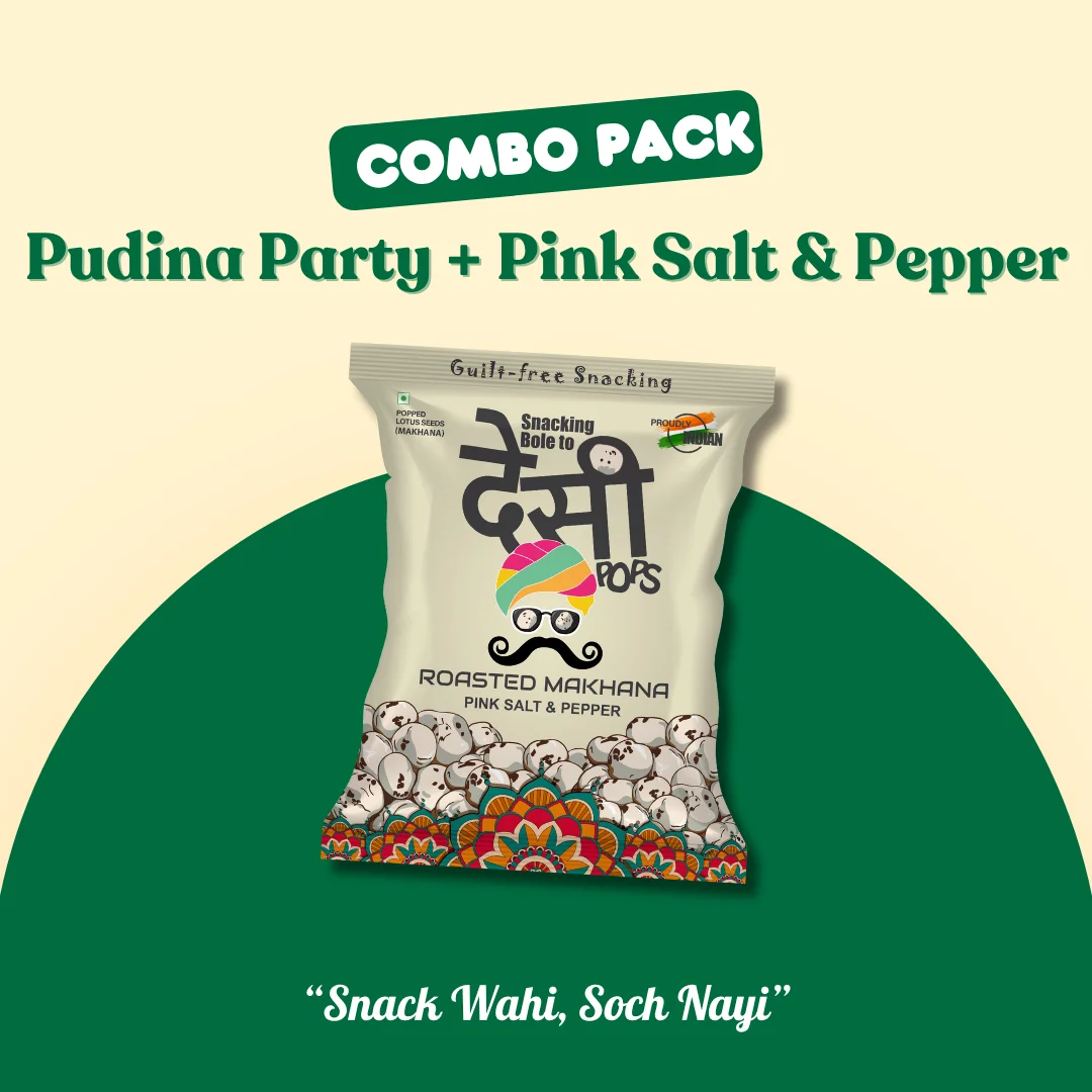 Combo of 2– Pudina Party 25gm + Pink Salt & Pepper 25gm |Desi Pops